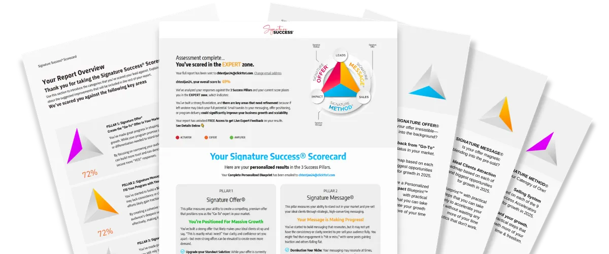 Discover the six essential pillars of building a solid Signature Business Machine, designed to attract and captivate the right people through a customer journey that seamlessly blends heart and mind connections, leading them naturally to the decision to invest in your Signature Offer.